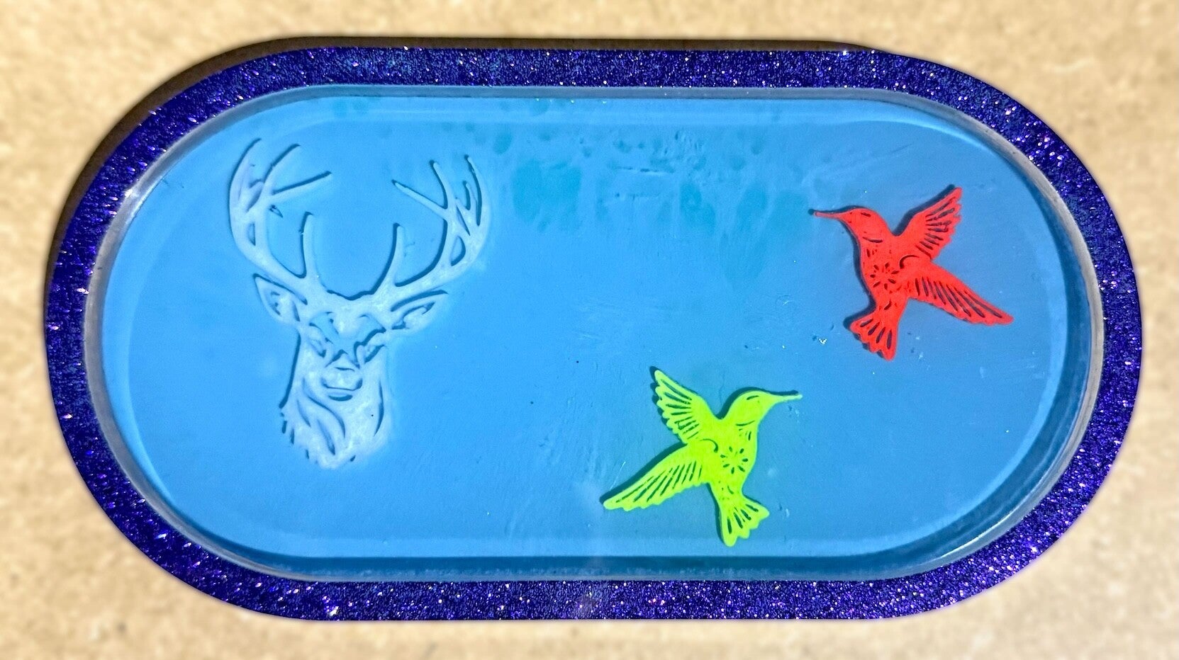 A partir de moules ,la création prend forme.Le rajout des couleurs ,paillettes et pigments donne une pièce unique. Incrustation de pièces fabriquées en impression 3D ou autres vous démarquera par l'originalité .Un cadeau pour un proche ou tout simplement pour vous et votre famille